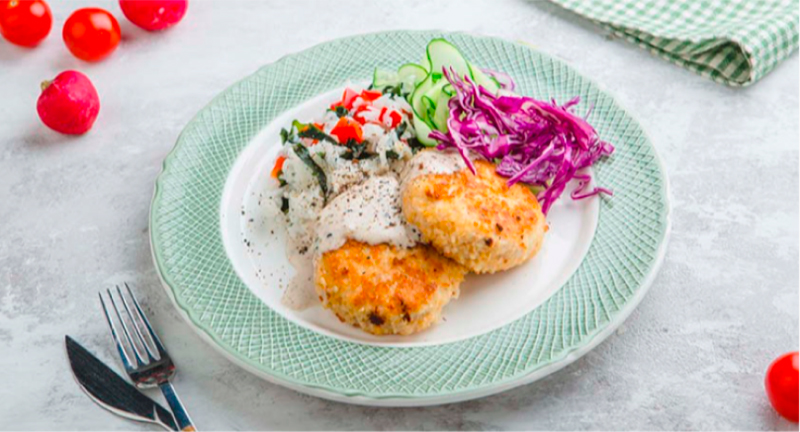 Котлетки из щуки с азиатским рисом и кунжутным соусом